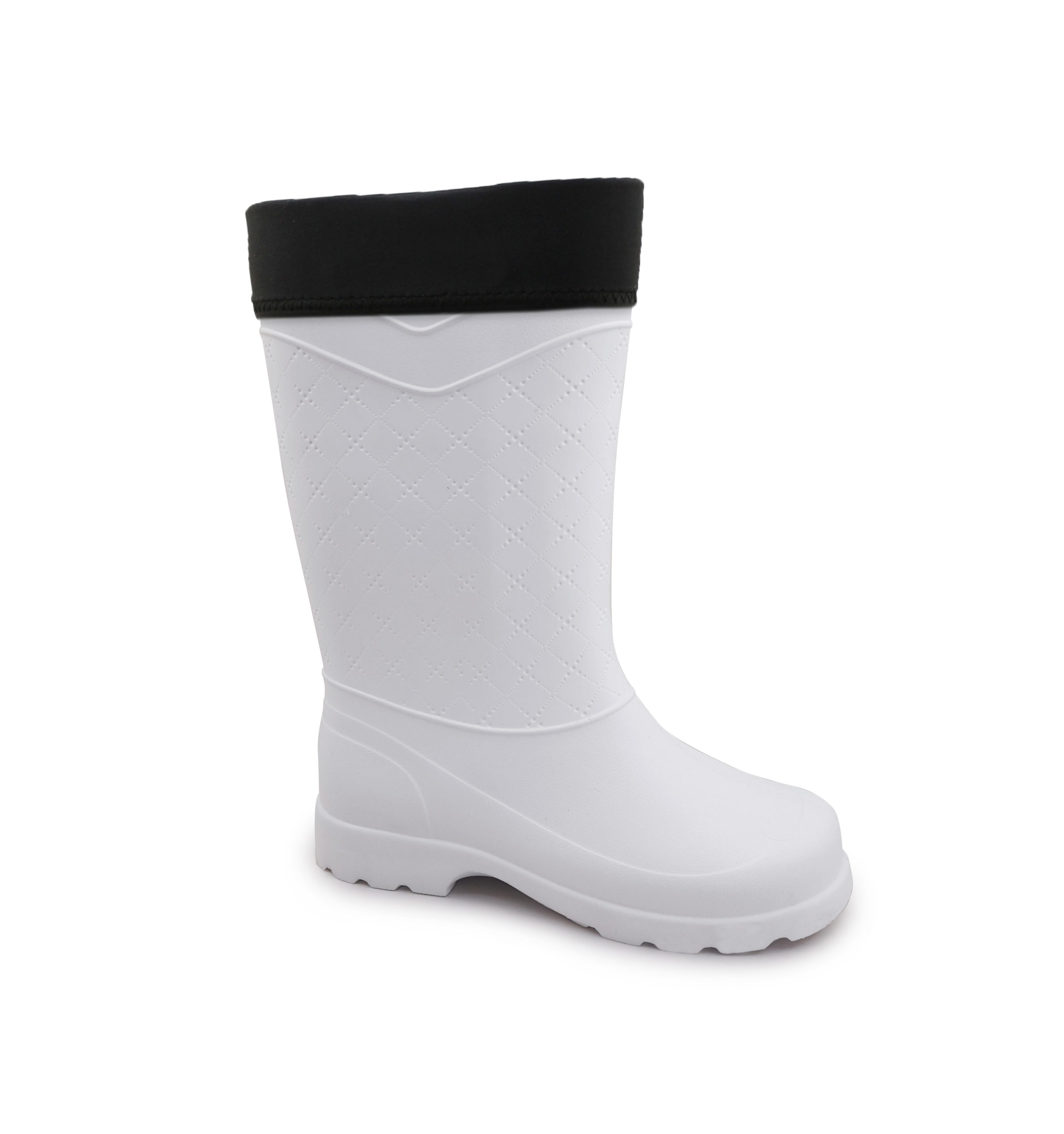 · По-друге, нижня частина, яка закриває стопу, зроблена литним методом- з дуже легкого, пружного і водонепроникного сучасного матеріалу ЕВА – і щільно пришита до верхньої частини чобота.