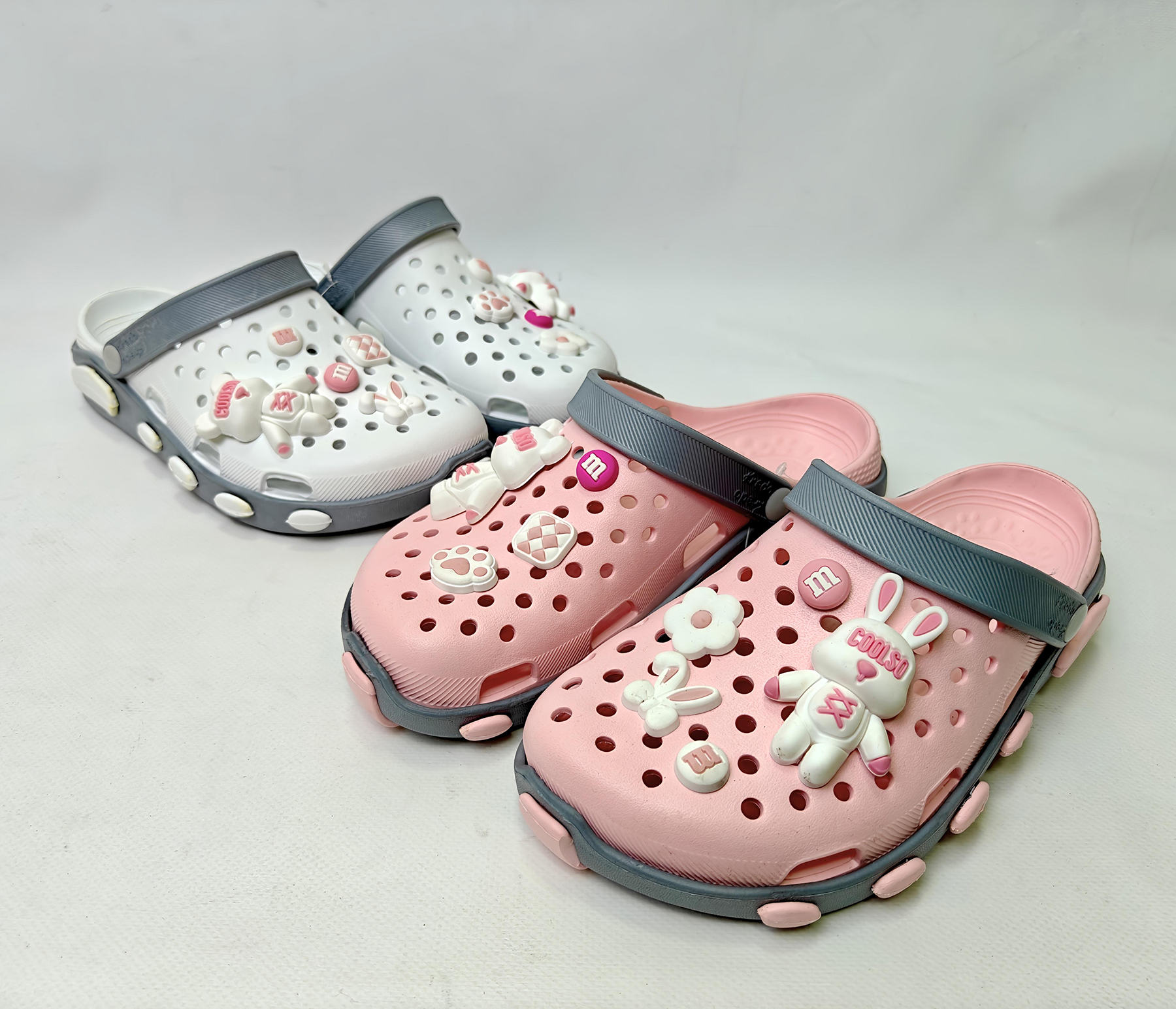 Зверніть увагу!! Фото прикрас на взутті є прикладом розміщення. Сабо постачається з набором прикрас (джибітсів) окремо, для вільного розміщення у бажаному Вам порядку.